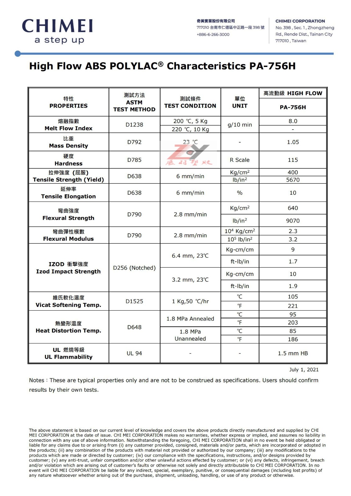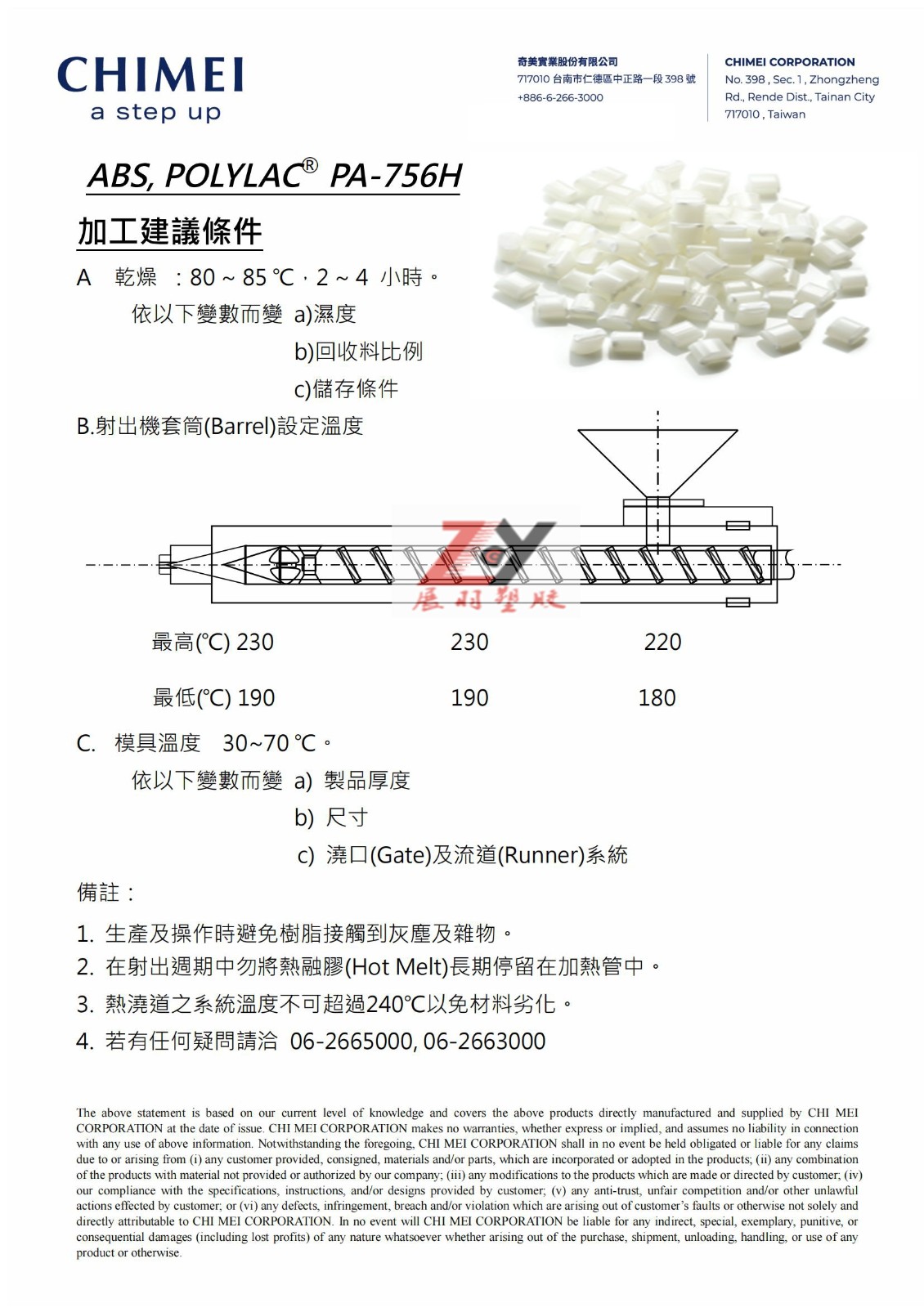 臺灣奇美 PA-756H 超高流動性 ABS樹脂 超大面積或超薄壁模塑產品