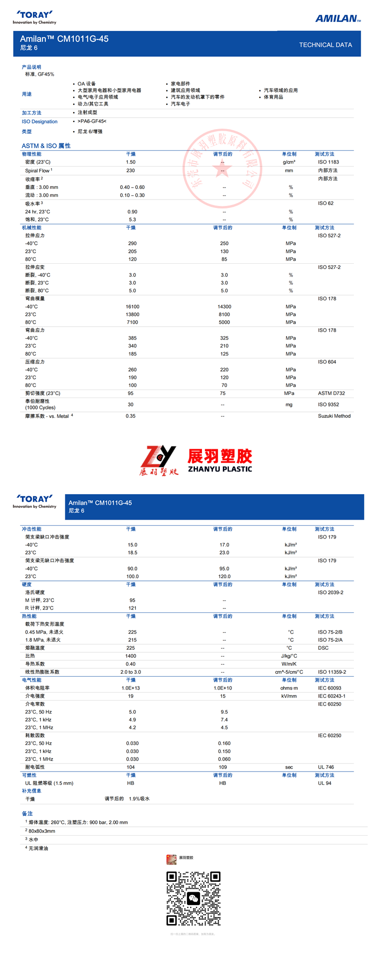 PA6 東麗 Amilan CM1011G-45 尼龍6 玻纖GF45% 電器組件 電子電器應用