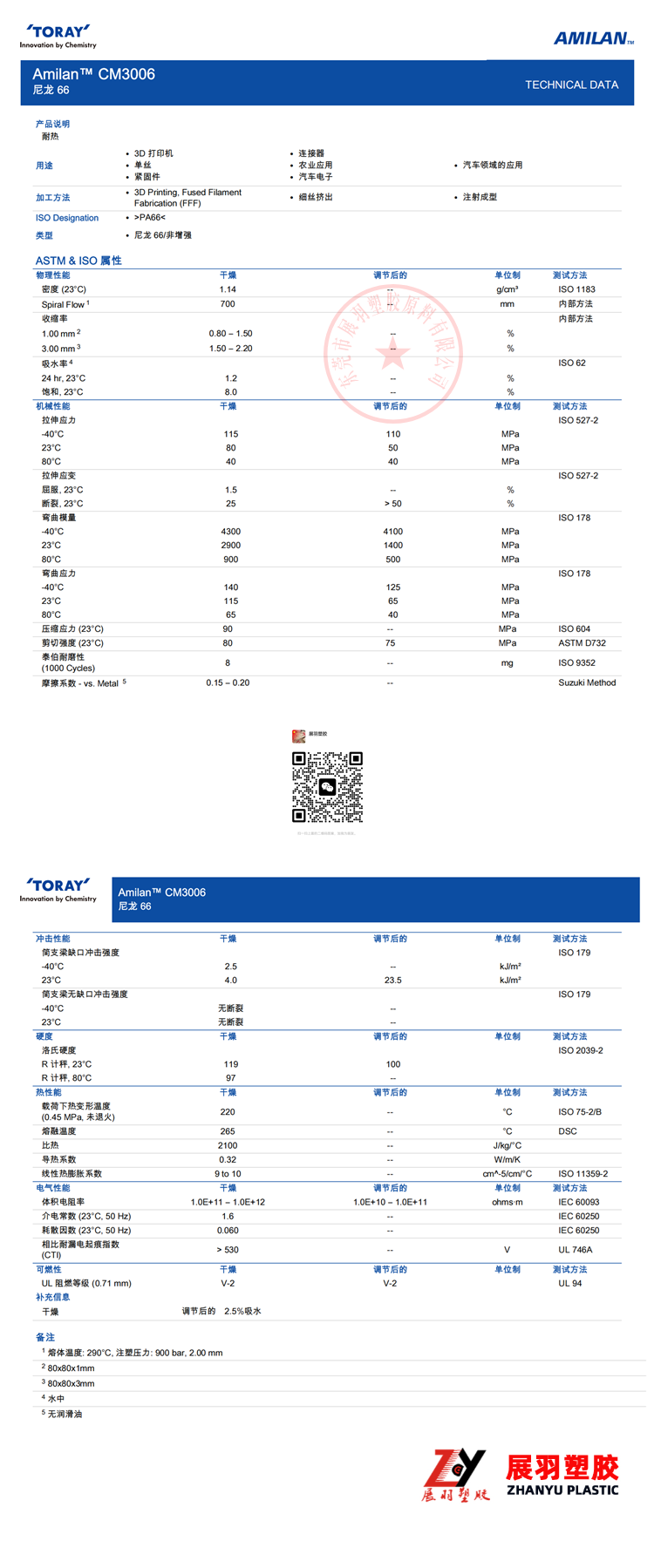 PA66 東麗 Amilan CM3006 高流動性 耐熱級 尼龍66 非增強 聚酰胺66 注塑成型