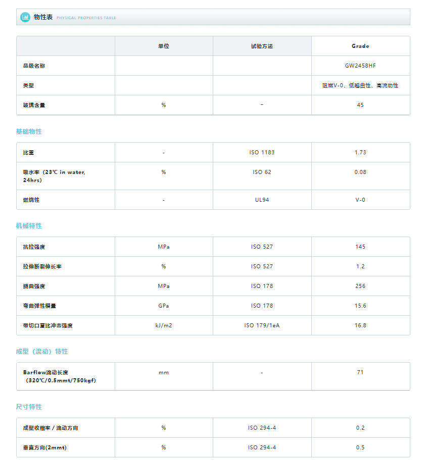 可樂麗 Genestar™ PA9T GW2458HF >PA9T-GF45-FR< 阻燃等級: V-0 缺口沖擊: 16.8 kJ/m2 符合規(guī)定: UL